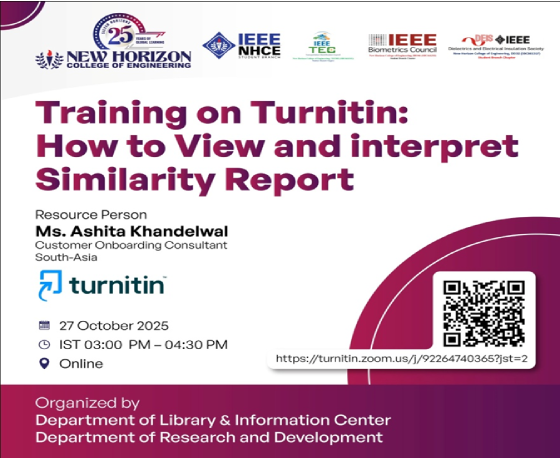 LIBRARY ACTIVITIES Library and Student Clubs Orientation Programme for MCA The Department of Library and Information Center, in collaboration with the Research and Development Cell of New Horizon College of Engineering, successfully organized an Online Training Session on “Turnitin: How to View and Interpret Similarity Report” on 27th October 2025. This session was a part […]